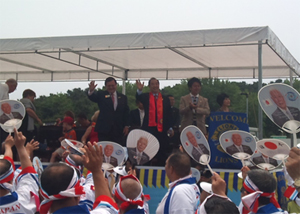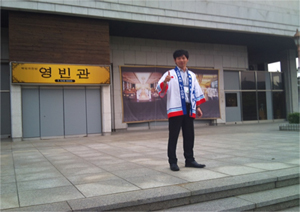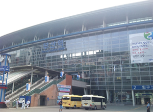 迎賓館といっても、あまり派手ではない入口会場でした。 タイムスケジュールが一杯の中、会の途中で私たちは帰りの新幹線の時間の為に、釜山 駅へ向かいました。なんとか、20時30発のKTX新幹線に乗らなけれ ば。。。