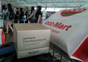 ![]() 飛行機に乗るまでの時間、唯一の自由行動は免税店で…。 |