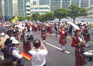 ブラスバンドでパレードを盛り上げた、地元韓国の学生さん達。 |