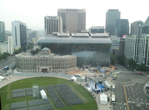 ![]() 3日間、御世話になったプラザホテルをソウル広場より撮影。 |