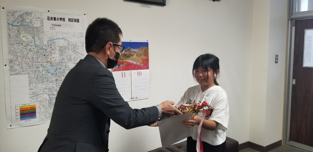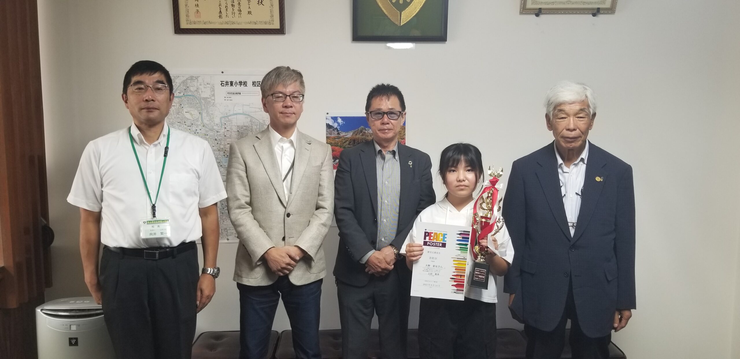 2023年10月30日 / 最終更新日時 : 2023年12月20日 mkinki アクティビティ 平和ポスター贈呈 2023年10月11日 石井東小学校より4名の参加があり、1枚を代表としてキャビネットに提出しました。 代表者にはトロフィーを贈呈し、参加賞として全員に図書カードをお渡ししました。 コメントを残す コメントをキャンセルメールアドレスが公開されることはありません。 ※ が付いている欄は必須項目ですコメント ※ 名前 ※ メール ※ サイト 次回のコメントで使用するためブラウザーに自分の名前、メールアドレス、サイトを保存する。 上に表示された文字を入力してください。