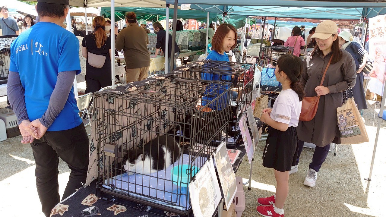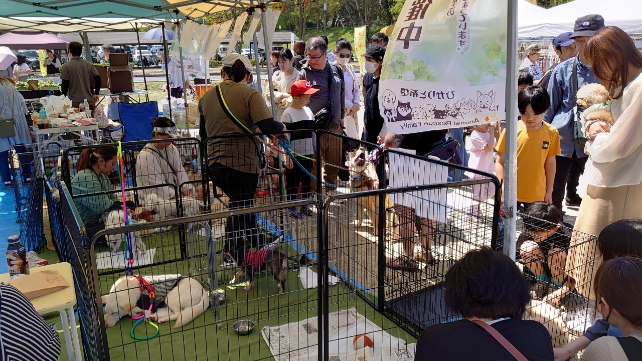城山公園にて、ワンワン大サーカス、キッチンカ―やショップでも集客し、保護犬保護猫12団体の参加により譲渡会を開催しました。SNSやラジオ等の発信により当日は大盛況となり、成功裏に終えることができました。